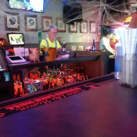 “ Don't serve food but lots of fast food places ok to bring in some times they have little parties and have food drinks reasonable and Strong pool table karaoke music smoking out back ”